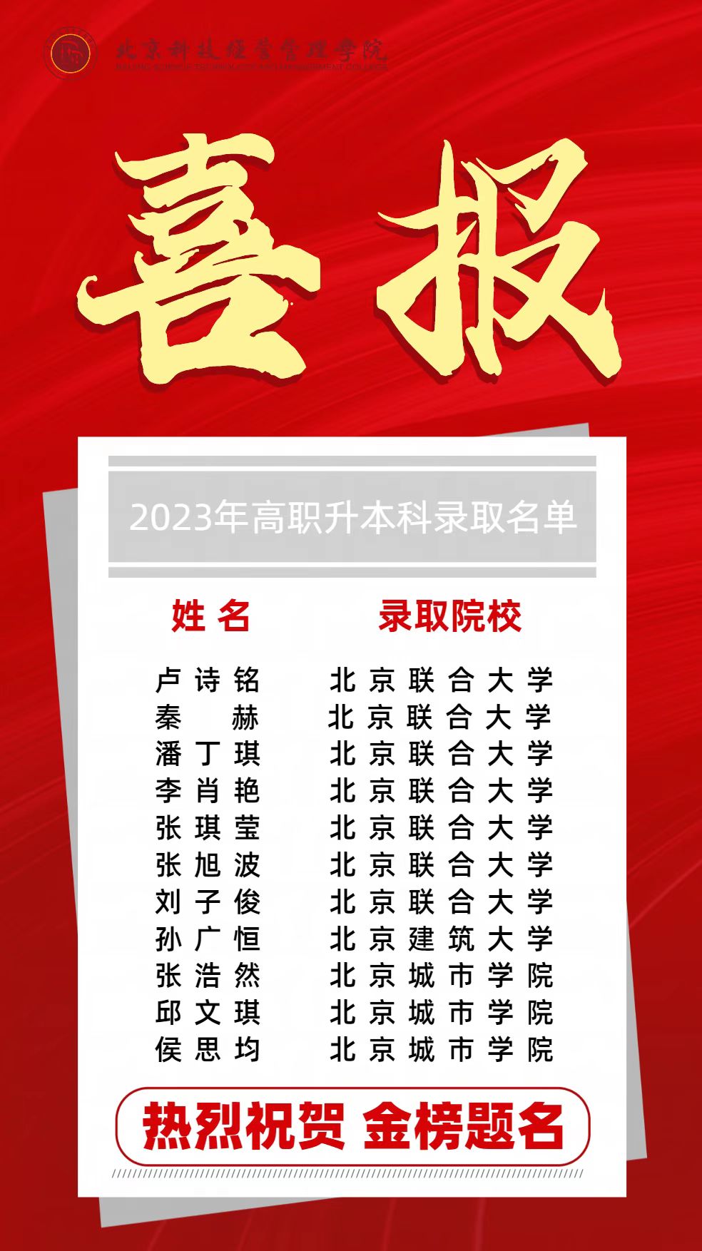 - 北京科技經營管理學院2023年高職升本科錄取喜報 2023-05-15