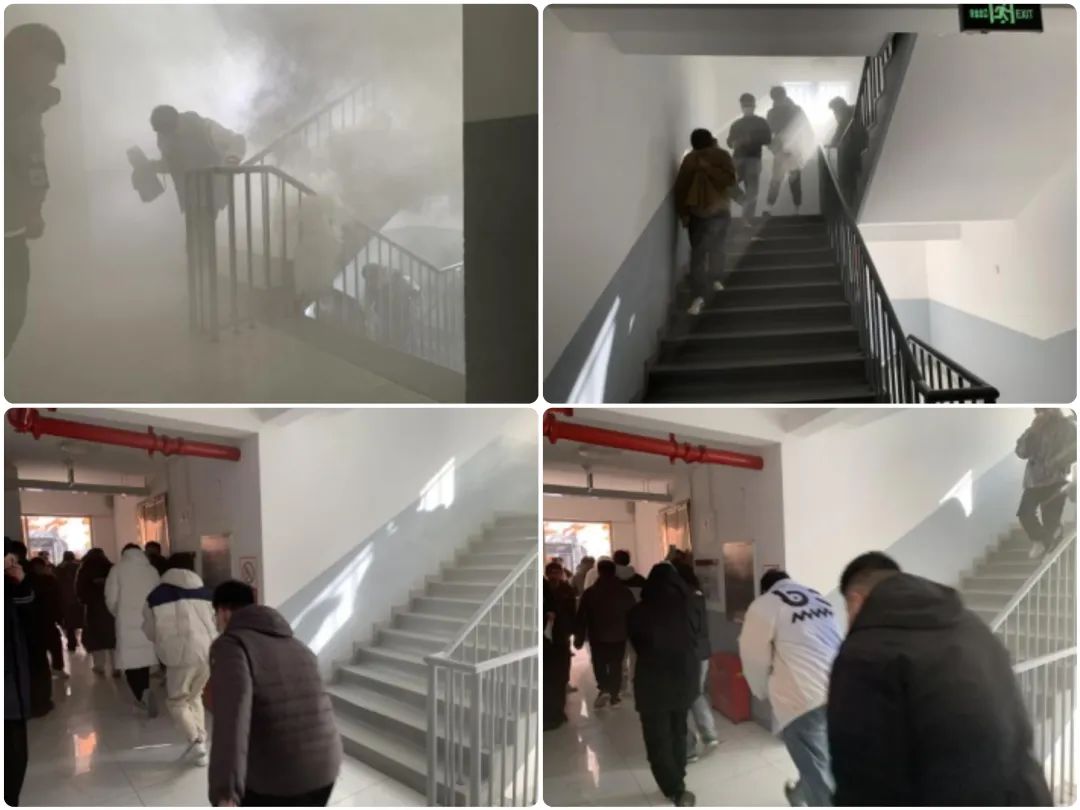 演練場景為模擬學生公寓2號樓發生“火災”。值班生活老師發現火情后第一時間向值班領導報告,拉響警報。隨著警報響起,全體教職工迅速到崗,沉著冷靜地指揮學生們有序撤離。師生們掩住口鼻,全部從宿舍樓里迅速撤離到安全地帶,安全到達集合地點,各班主任馬上清點人數,并逐級進行匯報。