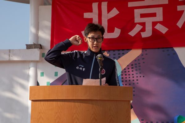 我校張碩繁同學代表全體運動員宣誓,他們將以積極、飽滿、熱情的態度參加本屆運動會,嚴格遵守賽事各項安排,遵守比賽規則和賽場紀律,服從裁判,尊重對手,團結協作,頑強拼搏,賽出風格,賽出水平。