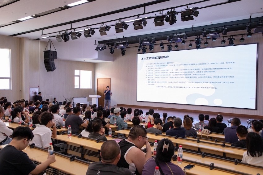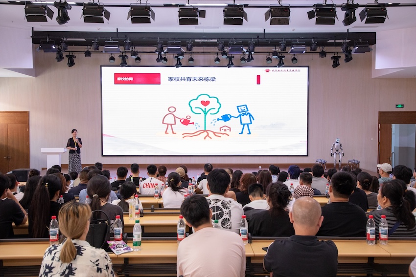 本次家長(zhǎng)會(huì)的一大亮點(diǎn)是:校企合作單位北京中關(guān)村軟件園智酷的工程師和他們的AI機(jī)器人團(tuán)隊(duì)來(lái)到了家長(zhǎng)會(huì)現(xiàn)場(chǎng)。