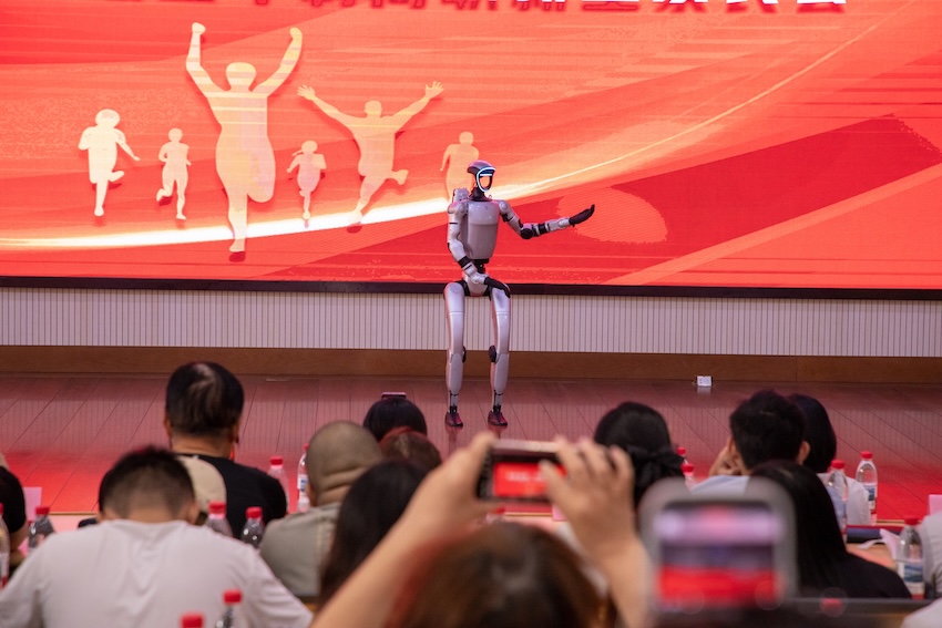 在現(xiàn)場(chǎng)互動(dòng)環(huán)節(jié),機(jī)器人展示了互動(dòng)交流、握手、太極拳表演,以人工智能的精準(zhǔn)與溫度,將抽象的“科技感”化為可觸、可感的現(xiàn)實(shí)互動(dòng)。