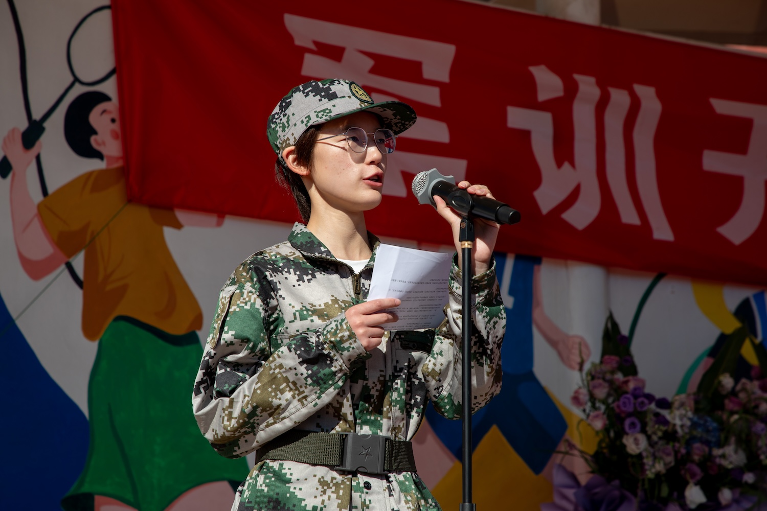 2025級計算機應(yīng)用技術(shù)專業(yè)趙宇同學代表參訓學生發(fā)言。她表示,軍訓是我們開啟大學成長之路的第一課,它不僅是對意志的磨練,更是對集體精神的淬煉。她號召全體新生以“歸零”的心態(tài)投入訓練,以“聚焦”的態(tài)度認真完成每一項任務(wù),以“突破”的勇氣挑戰(zhàn)自我極限,將這次軍訓視為證明價值、錘煉品格的重要起點。號召同學們在訓練中互幫互助,共同進步,為大學生活寫下堅定有力的開篇。