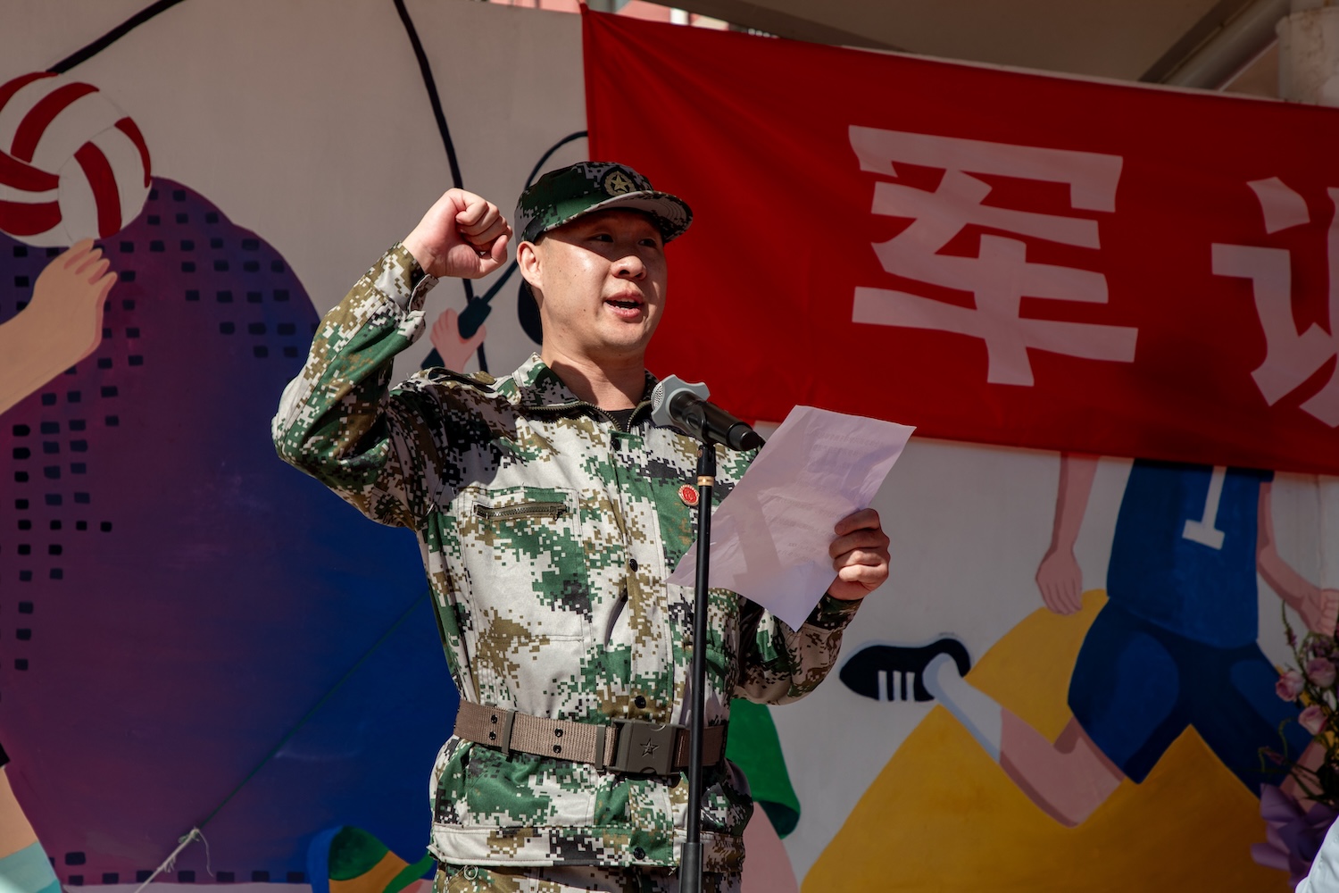軍訓教官代表莊嚴承諾,將以高度的責任感科學組訓、按綱施訓。全體教官將堅持科學方法,嚴格遵循大綱要求,做到因人施教、循序漸進,在確保訓練質(zhì)量的同時充分關(guān)注學生身體狀況。教官團隊將以嚴謹?shù)淖黠L和全面的保障,幫助同學們錘煉意志、增強體魄,切實提升軍訓育人實效。