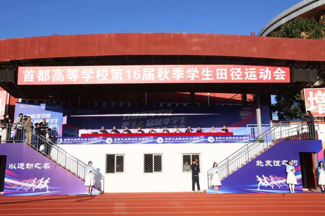 本屆運動會于10月11日、18日至19日在北京工業職業技術學院舉行,是北京市規模最大、水平最高的大學生田徑賽事。在我校學生處副處長劉樸、基礎教學部劉桐和周逸軒老師的協同帶隊下,我校代表團全程參與了為期三天的激烈角逐。開幕式上,我校方陣步伐整齊、意氣風發,展現出團結奮進的青春風貌。