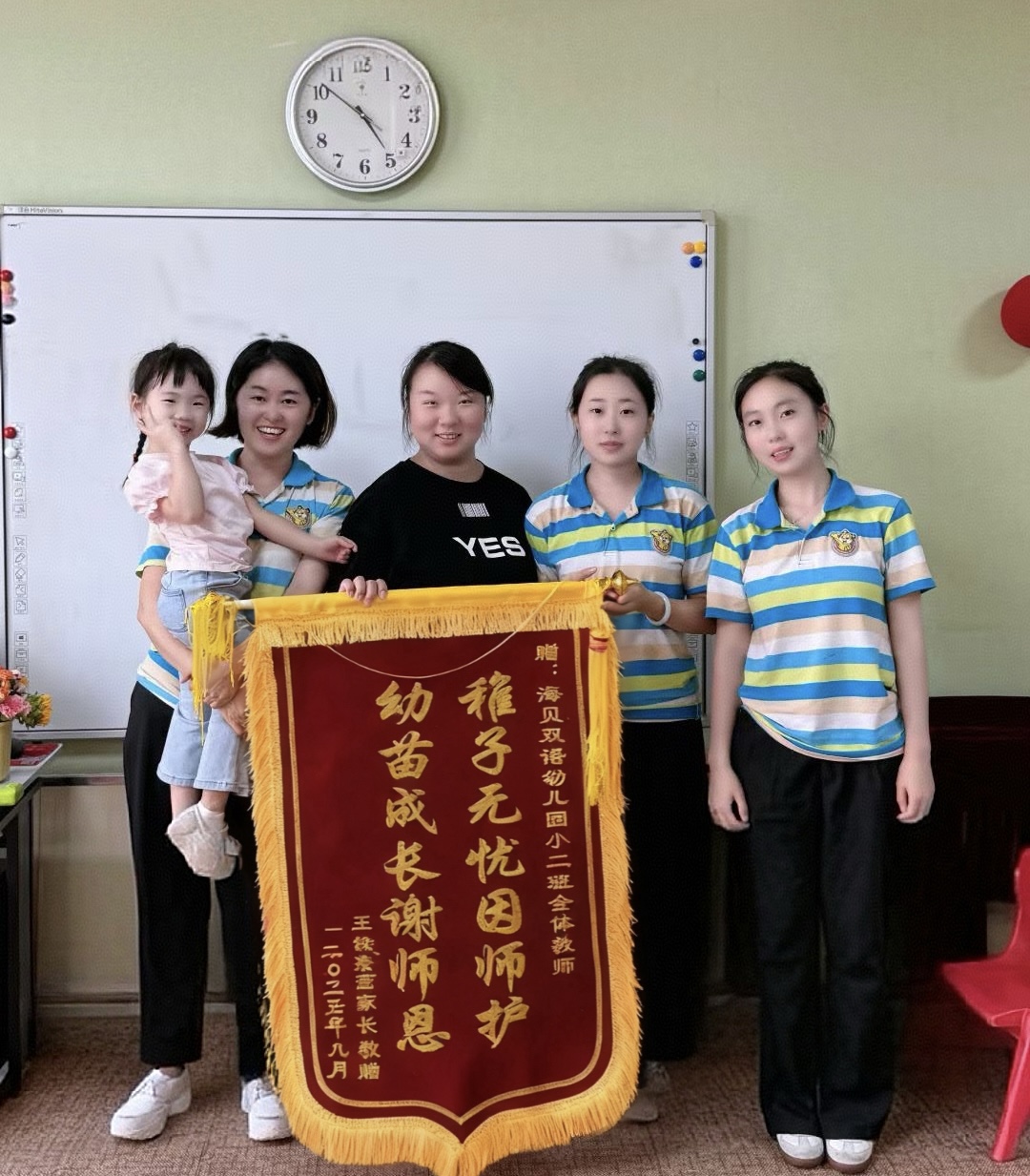一面榮譽班旗,是來自實踐一線的最高認可。2023級早期教育專業李雙同學所在實習班級,獲得了榮譽班旗,這面沉甸甸的班旗,標志著學子們從課堂到崗位的成功轉換。胡伊檸老師表示“我們由衷的感到自豪,這證明我們的學生是經得起實踐?檢驗的!”化身“老師姐姐”的學子們,將兒童心理學、游戲設計理論轉化為趣味活動,真正實現了“理論落地”。