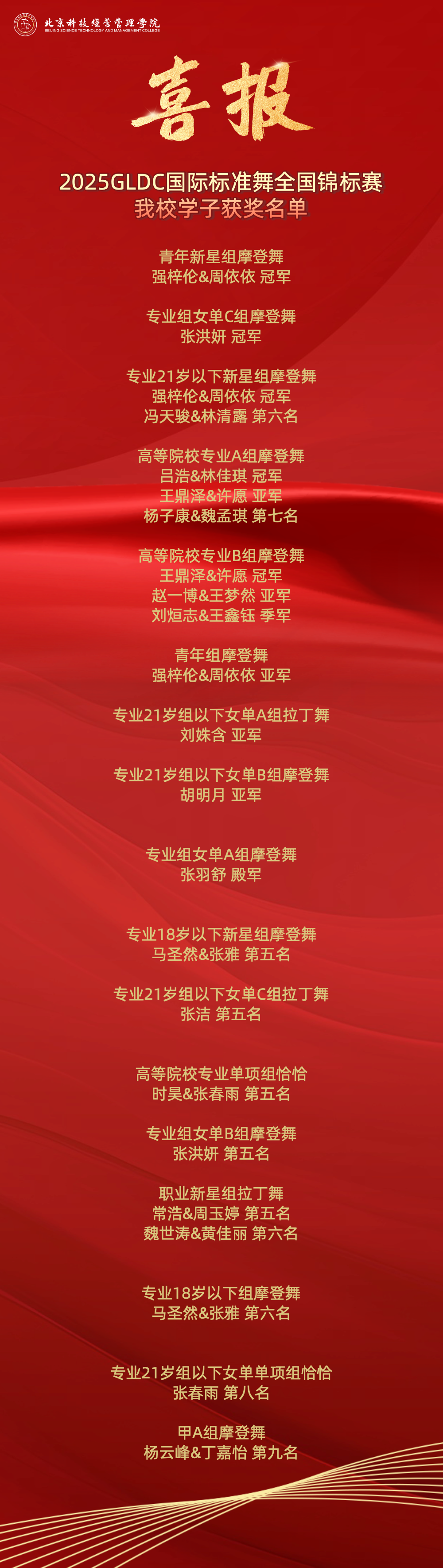 - 喜報 | 我校學子閃耀2025GLDC全錦賽,舞蹈表演(體育舞蹈)專業實力載譽而歸! 2025-10-30