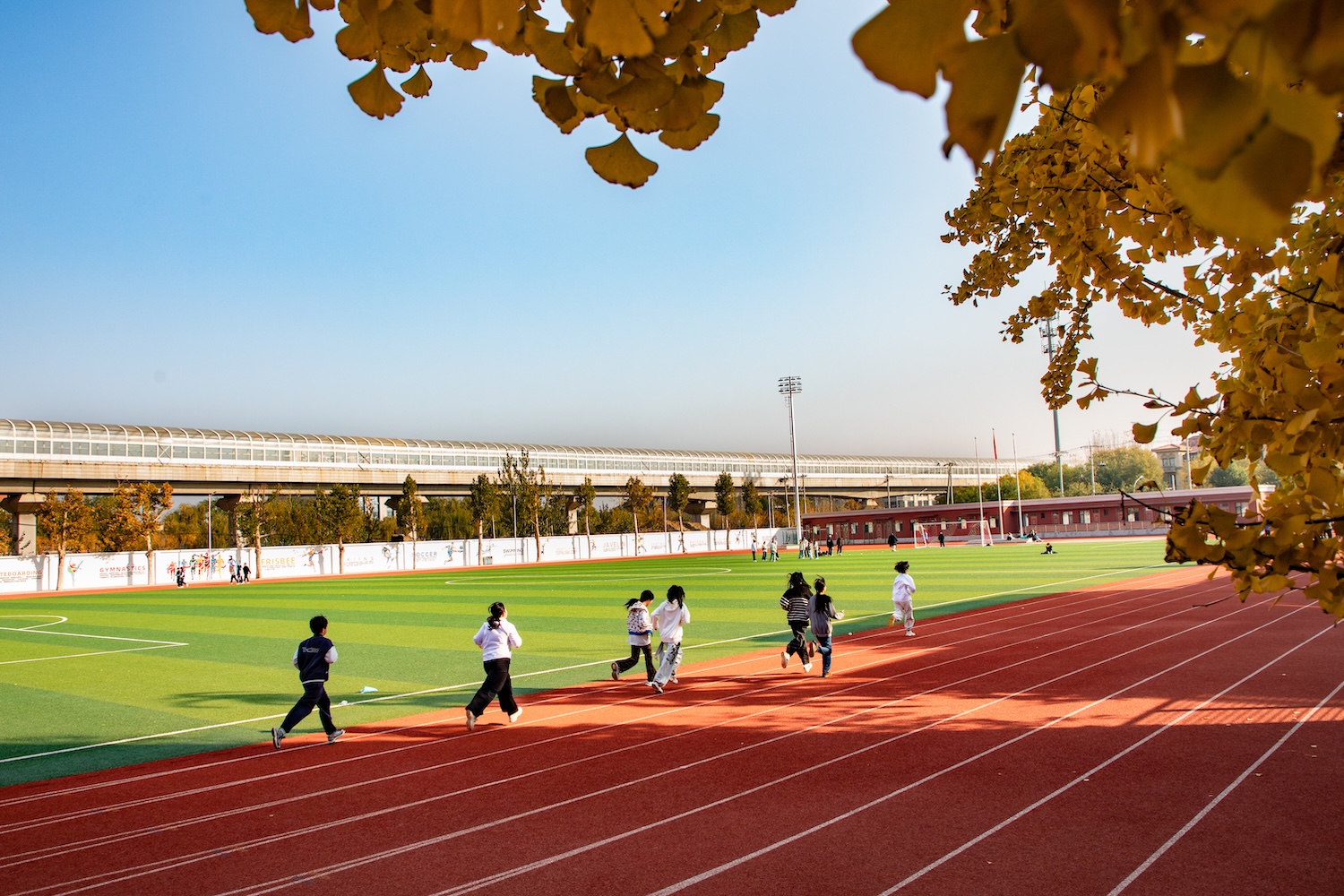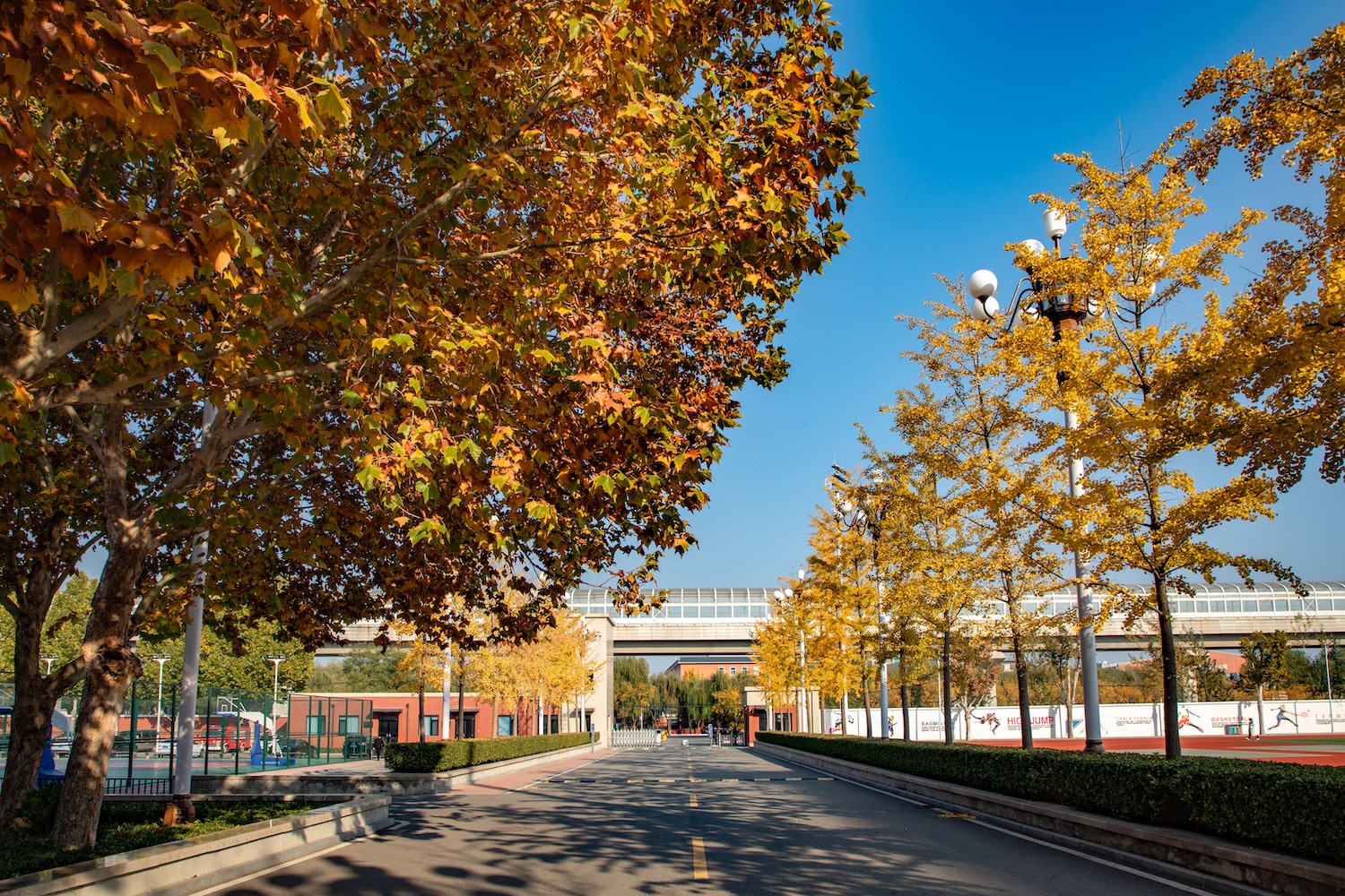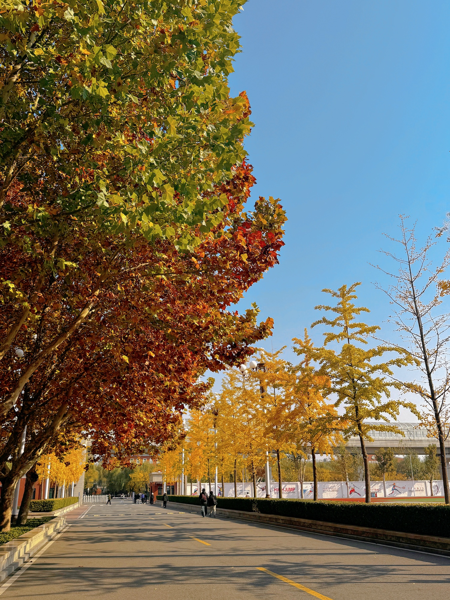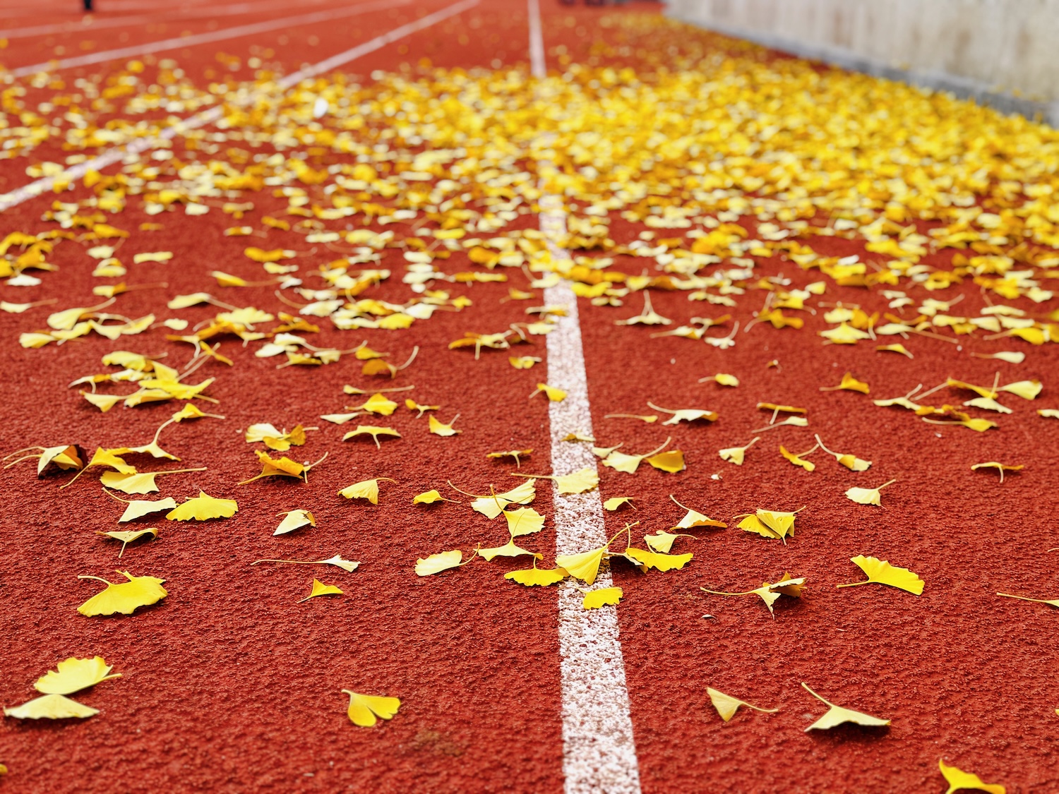 跑道旁的樹木換上秋裝,運動的活力與落葉的靜美在此刻交織,碰撞出無限的生機。